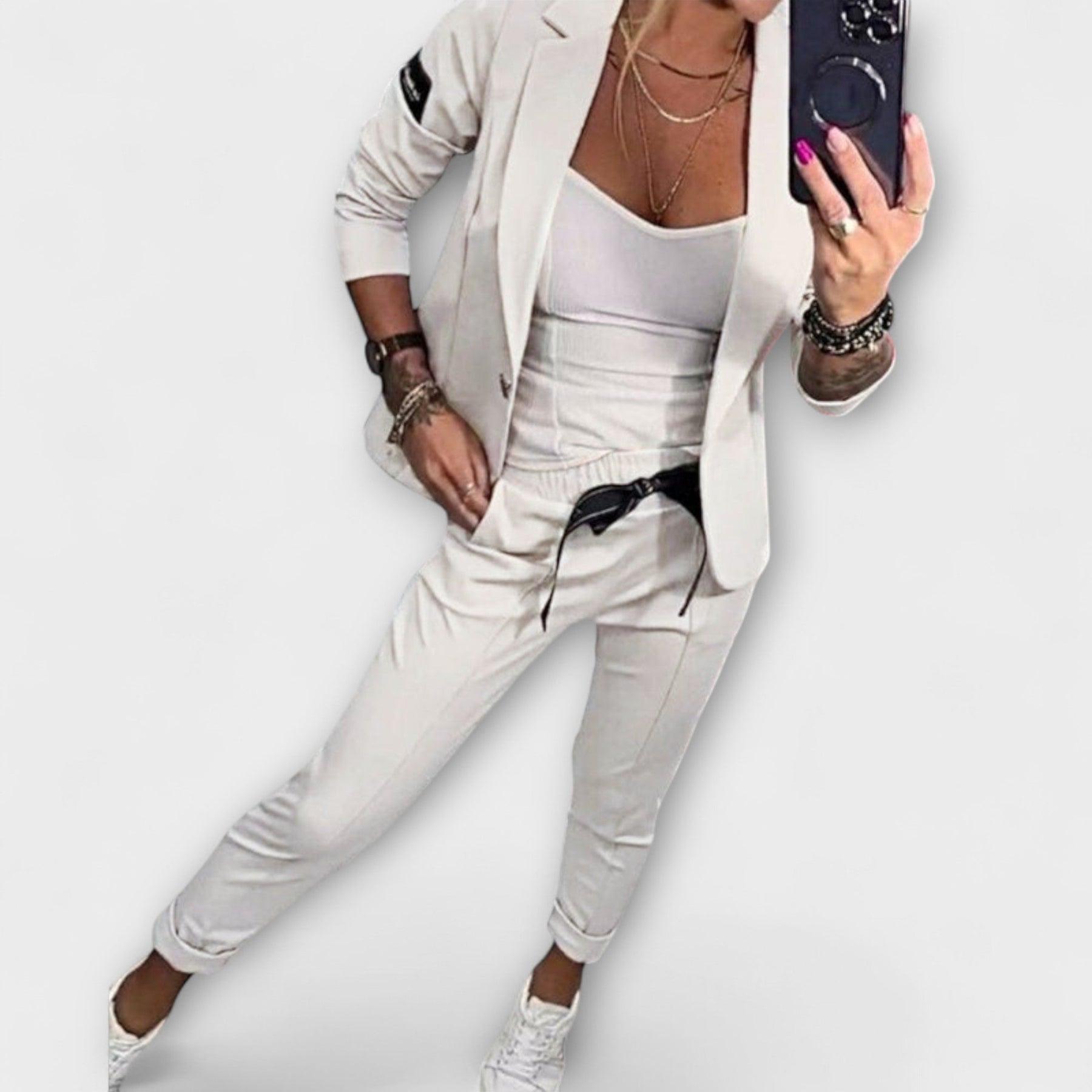 Odkryj idealne połączenie stylu i komfortu w tym eleganckim zestawie trzech części—zapewniającym bezproblemową elegancję na każdą porę roku.
